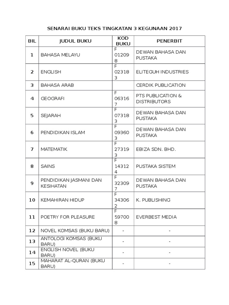 Senarai Buku Teks Tingkatan 3 2020 Pdf
